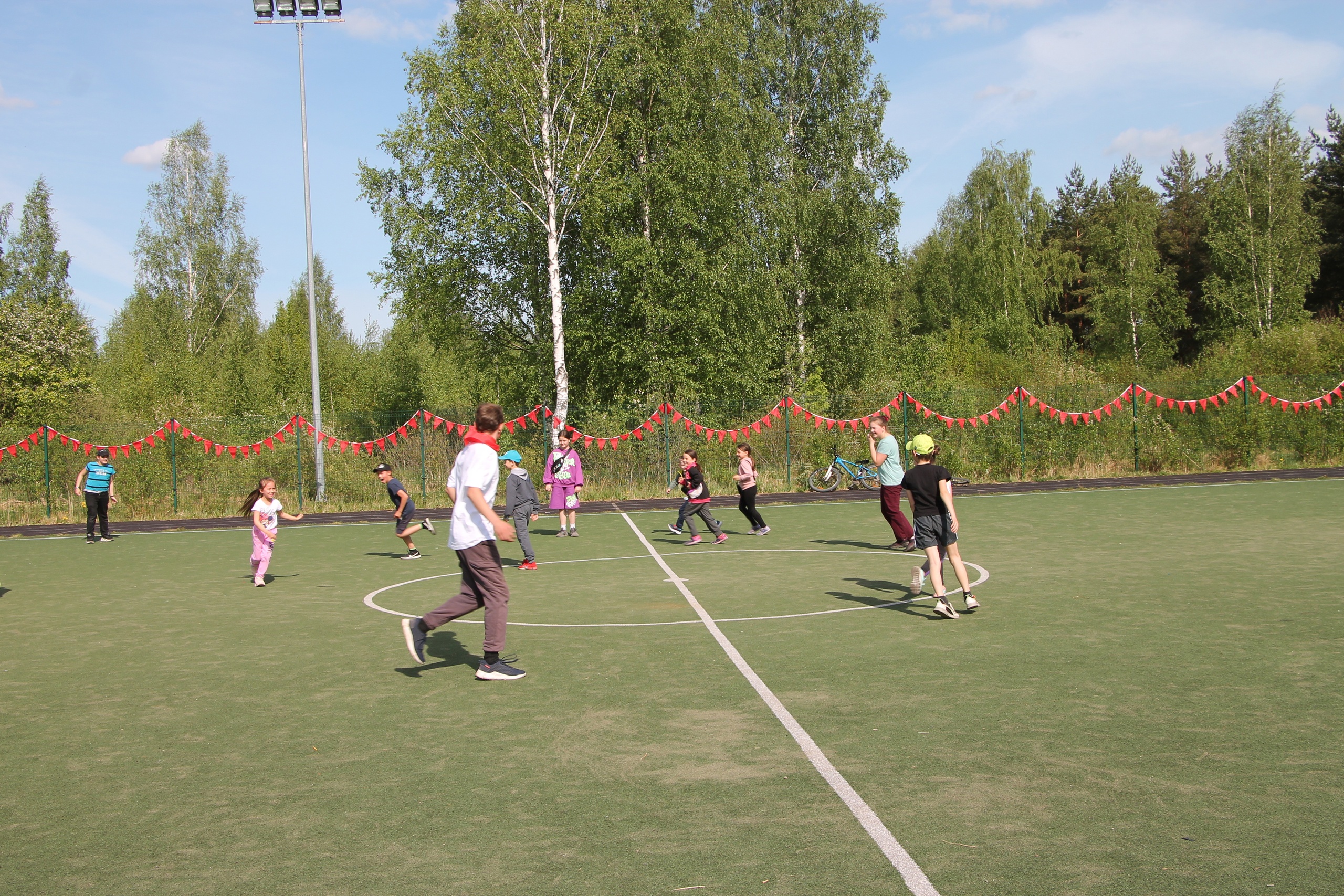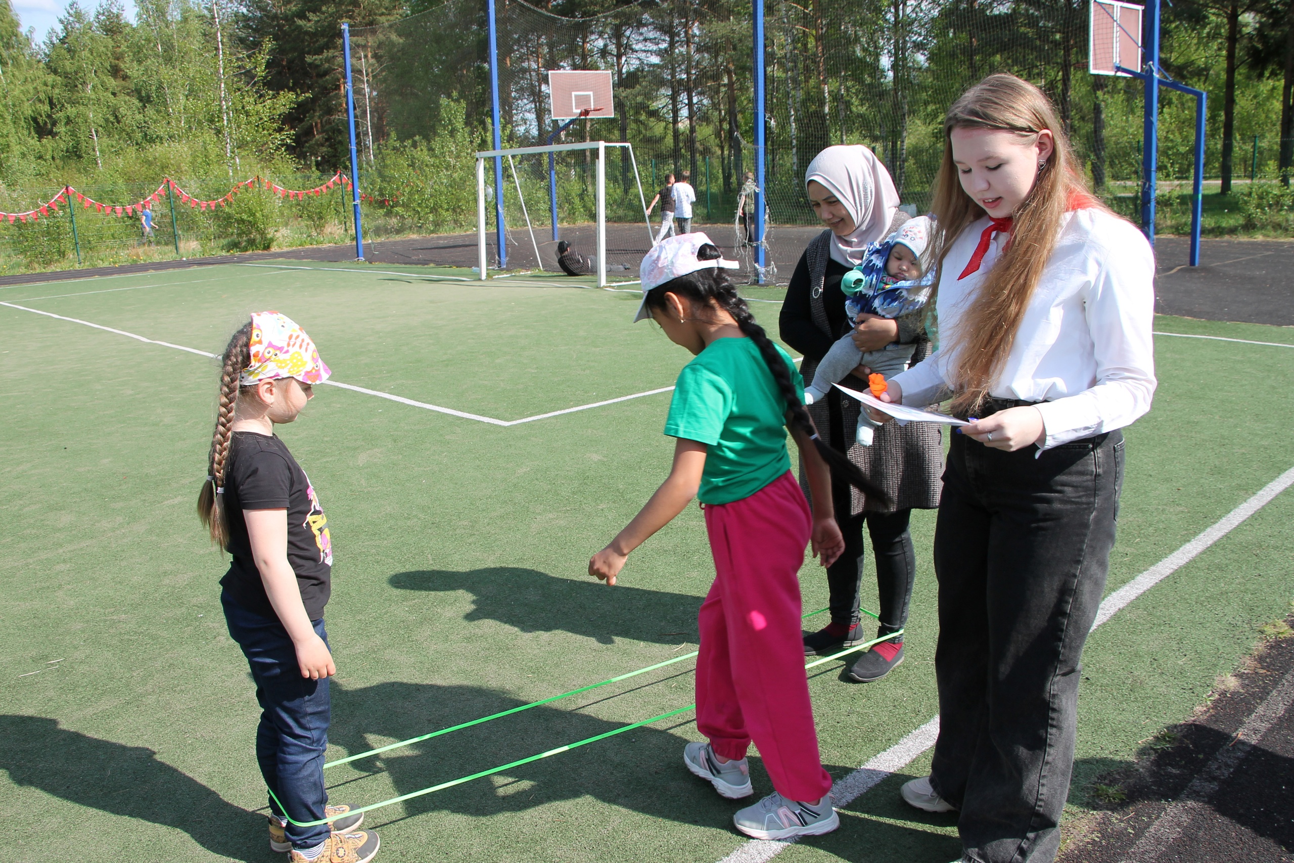Программа была довольно насыщенной. Командам были предложены занимательные конкурсы с бегом, прыжками, эстафетами, где каждый смог проявить свои спортивные навыки. Участники соревновались в скорости, ловкости, меткости, умении работать в команде. Праздник получился захватывающим и забавным, оставил массу положительных эмоций и впечатлений.